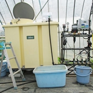 ビニールハウス1号棟及び2号棟において各400鉢以上のポット栽培によるミニトマトへの「水やり」を自動化しました。