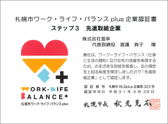 札幌市ワーク・ライフ・バランスplus 企業認証